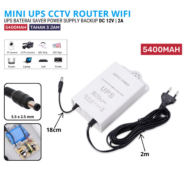 MINI UPS 12V 2A UNTUK RER WIFI CCTV IPCAMERA DOOR TAHAN AIR WER SUPPLY BACKUP 5400MAH