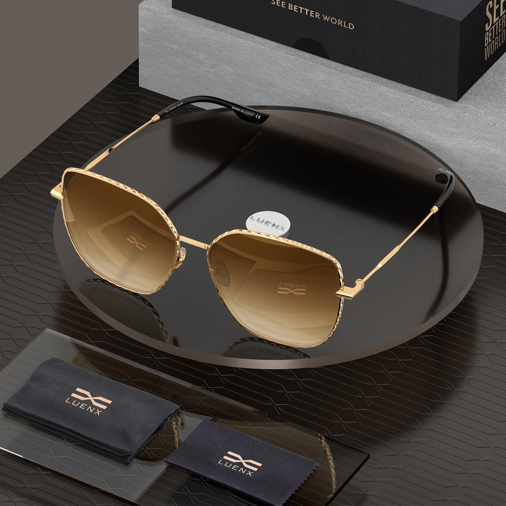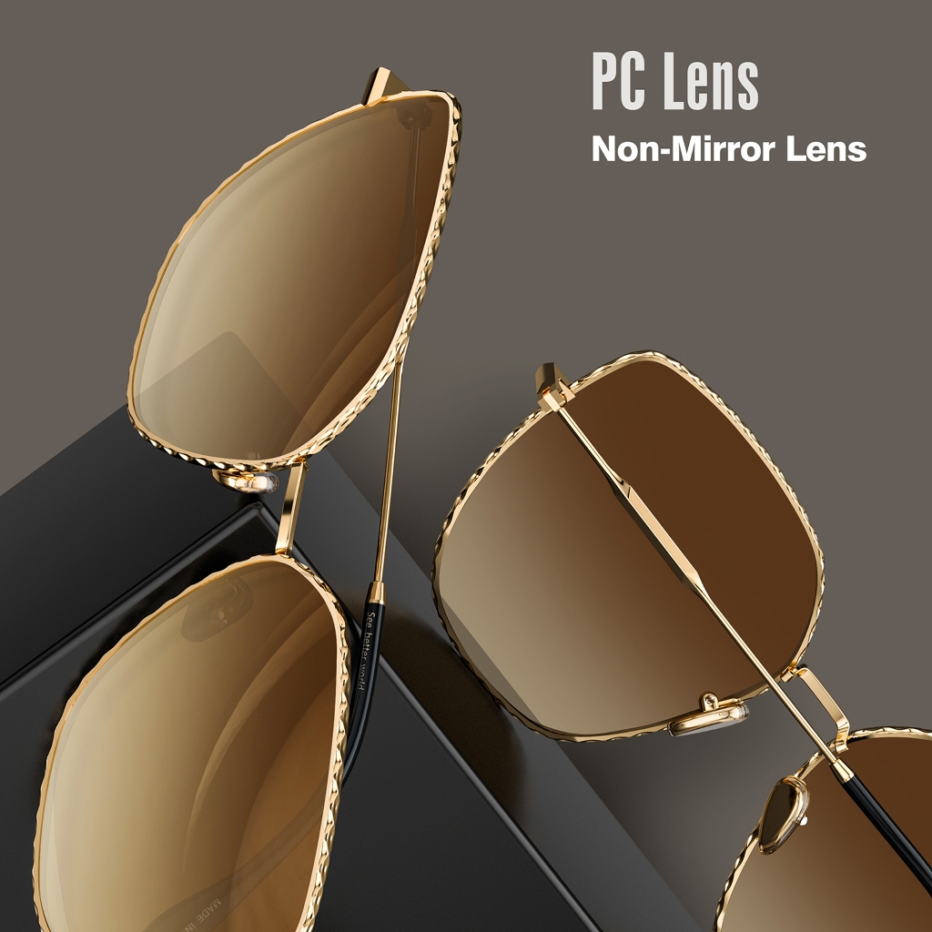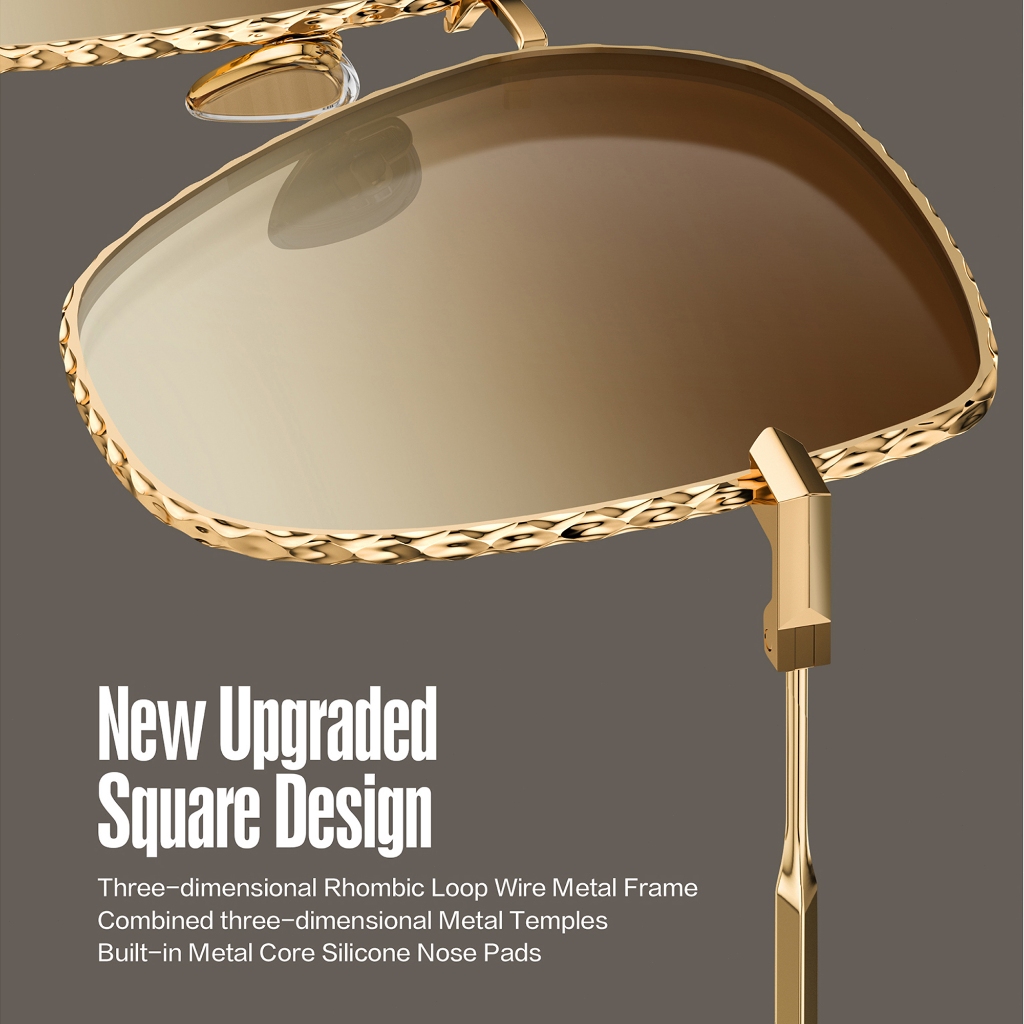 Luenx Kacamata Hitam Trendy Square Oversized Women Aviator Sunglasses - Polygon Flat Three dimensional Rhombic Loop Wire Frame PC Lens 8101-1