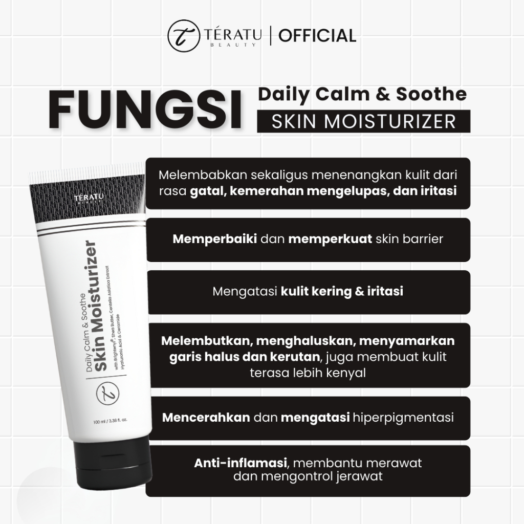 TERATU BEAUTY Daily Calm & Soothe Skin Moisturizer (Melembabkan & Memperkuat Skin Barrier Kulit Kering, Iritasi, Eksim, Dermatitis, Rosacea)