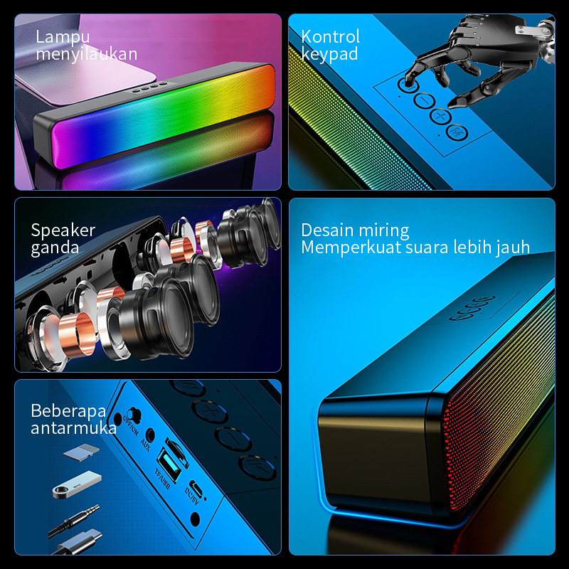 40CM Long Speaker Bluetooth Speaker Soundbar RGB Smart Lamp Touch Mini led HiFi rtable Wireless Speaker 5 Colors LED Light Computer TV Phone TF Multifunction 5.3 Bluetooth Speaker