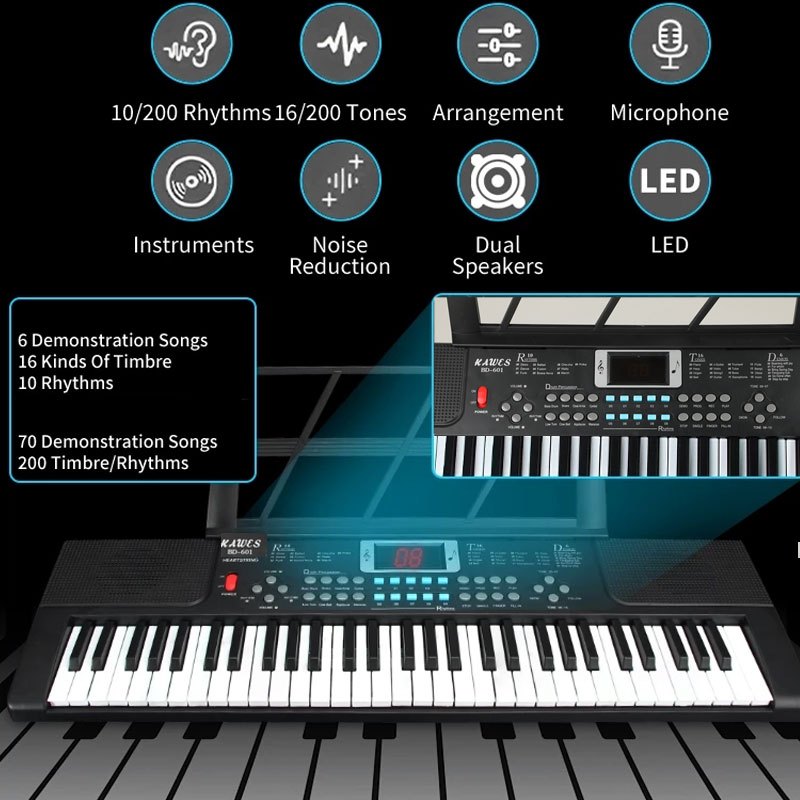 kAWES Piano Elektronik Untuk Anak-anak Piano Elektronik Untuk Pemula Piano Elektronik 61 Tombol Piano Elektronik Multifungsi Dengan Mikrofon Kecil