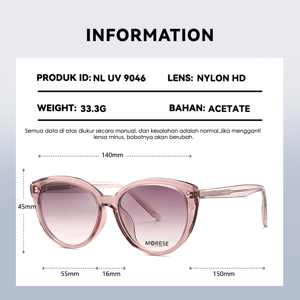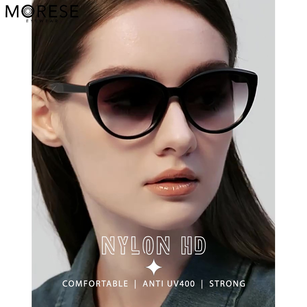 Morese Kacamata Sunglasses Nylon HD Anti UV 400 Style Cat Eye Bahan Acetate Kokoh TerBaru Fashion Wanita 9046