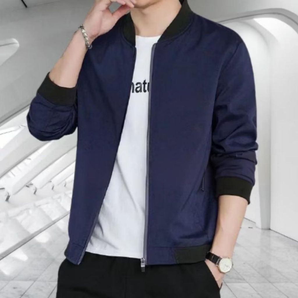 UsreeYousra Jaket Bomber Pria Zipper Waterproof Variasi Basic