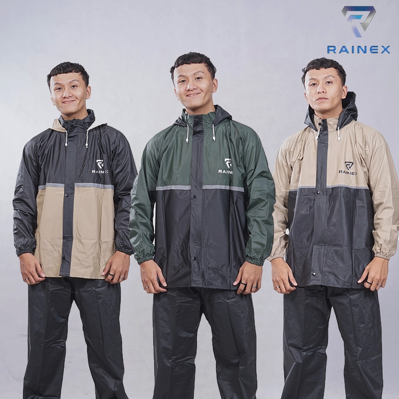 Jas Hujan Mantel Rainex Setelan Pria/Wanita Bahan Pvc Tebal, Fullpress Sealer, Anti Rembes