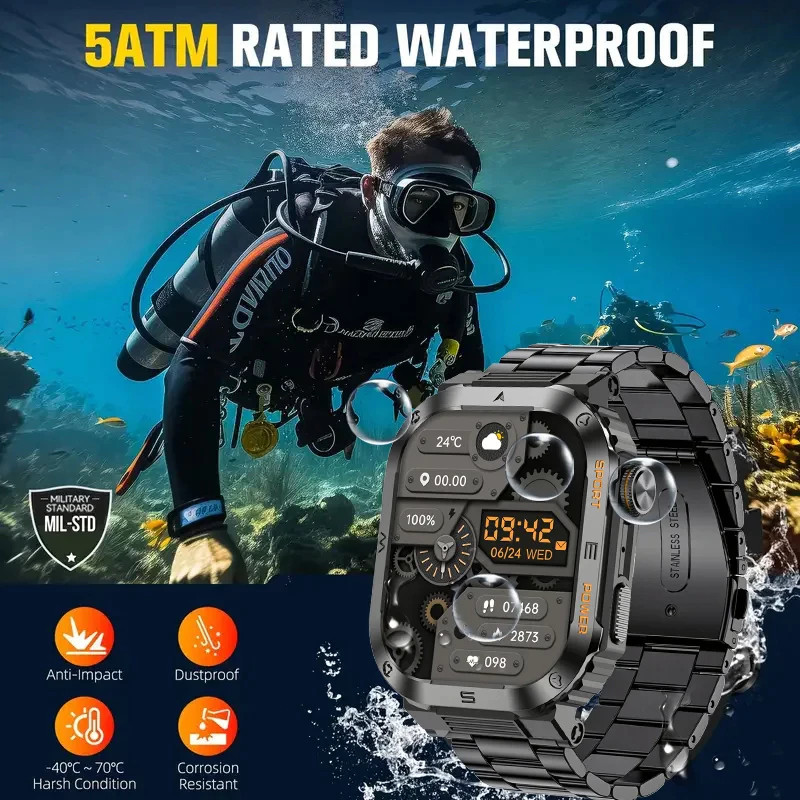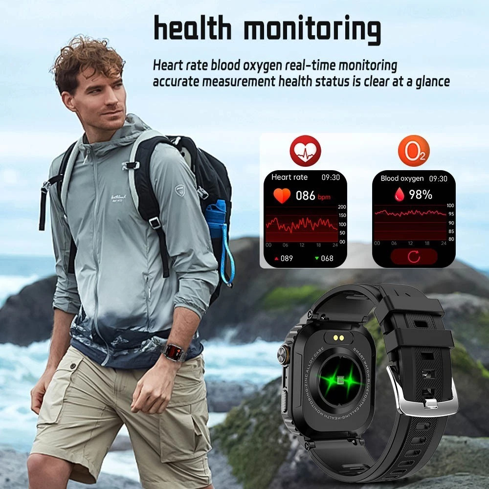 Jam Tangan Pintar Pria Asli 100+ Olahraga IP68 Tahan Air Panggilan Bluetooth Deteksi Denyut Jantung Jam Tangan Pintar Militer