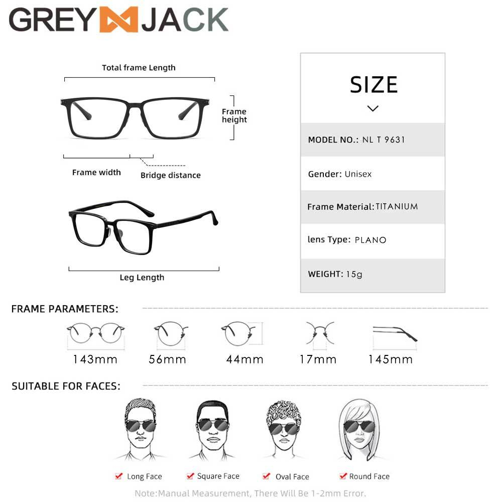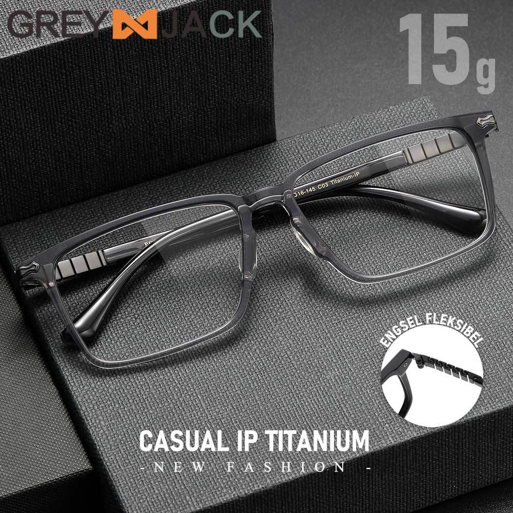 Grey Jack Frame Kacamata Model Kotak Bahan Titanium Ringan Kokoh Fashion Bisnis Pria Wanita Bisa Minus 9632