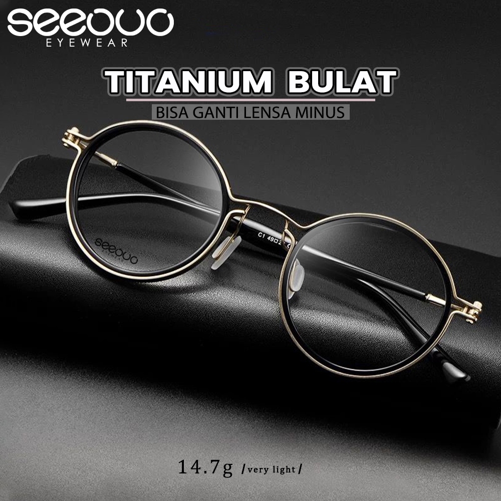 Seeouo Kacamata Model Bulat Retro Classic Lensa Plano Bisa Minus Bahan Titanium High Quality Fashion Unisex Keren 5862