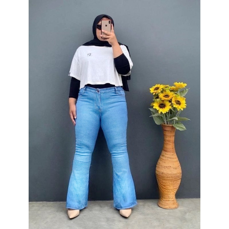 Celana Jeans Wanita Cutbray Highwaist Loose Super Jumbo st27nyell