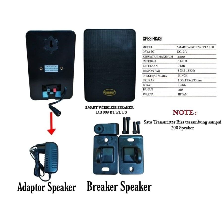 Paket Sound Cafe, Premium Speaker smart Wireless DUSENBERG 4 Titik Speaker Wireless, 1 Transmitter