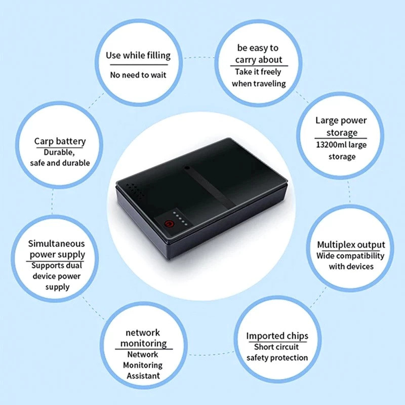 UPS Backup wer Adapter 36W 10400mAh Large Capty Mini rtable UPS Rer Uninterruptible wer Supply 5V 9V 12V UPS Rer Optical Cat Built-in Adapter Backup wer Supply Eu