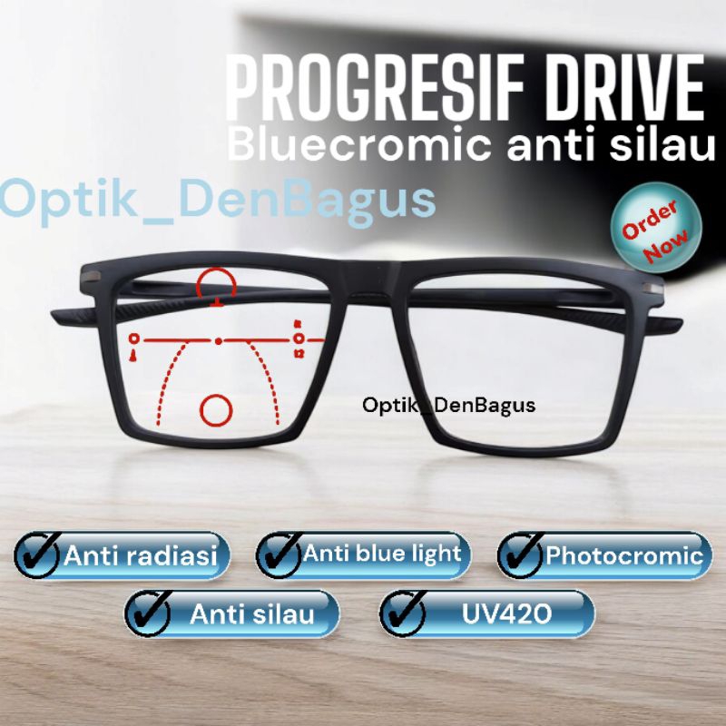 Bluecromic Drive progresif series anti silau kacamata model untuk wajah lebar/besar. progresif blueray photocromic bluecromic night Drive
