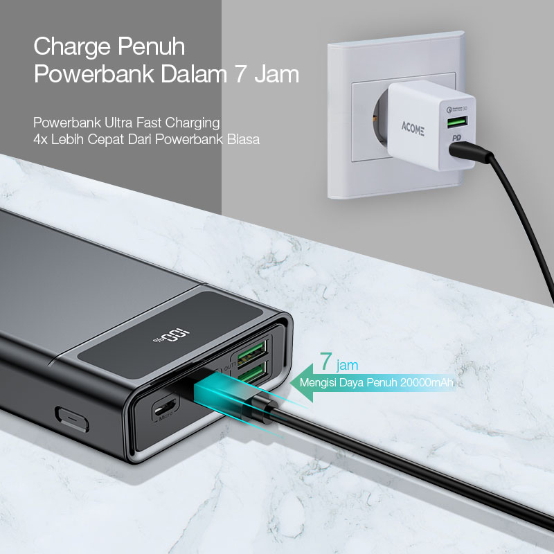 ACOME wer 20000mAh AP201 Fast Charging LED Display Dual Input & Three put Original for for iPhone Samsung Xiaomi Huawei Infinix Realme