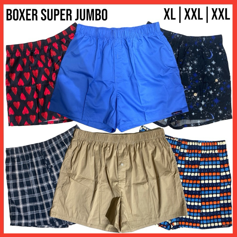 Paket 3 Pcs Celana Boxer Pria Jumbo size | XL | XXL | 3XL | 4XL | Bahan katun printing | Bonzzano