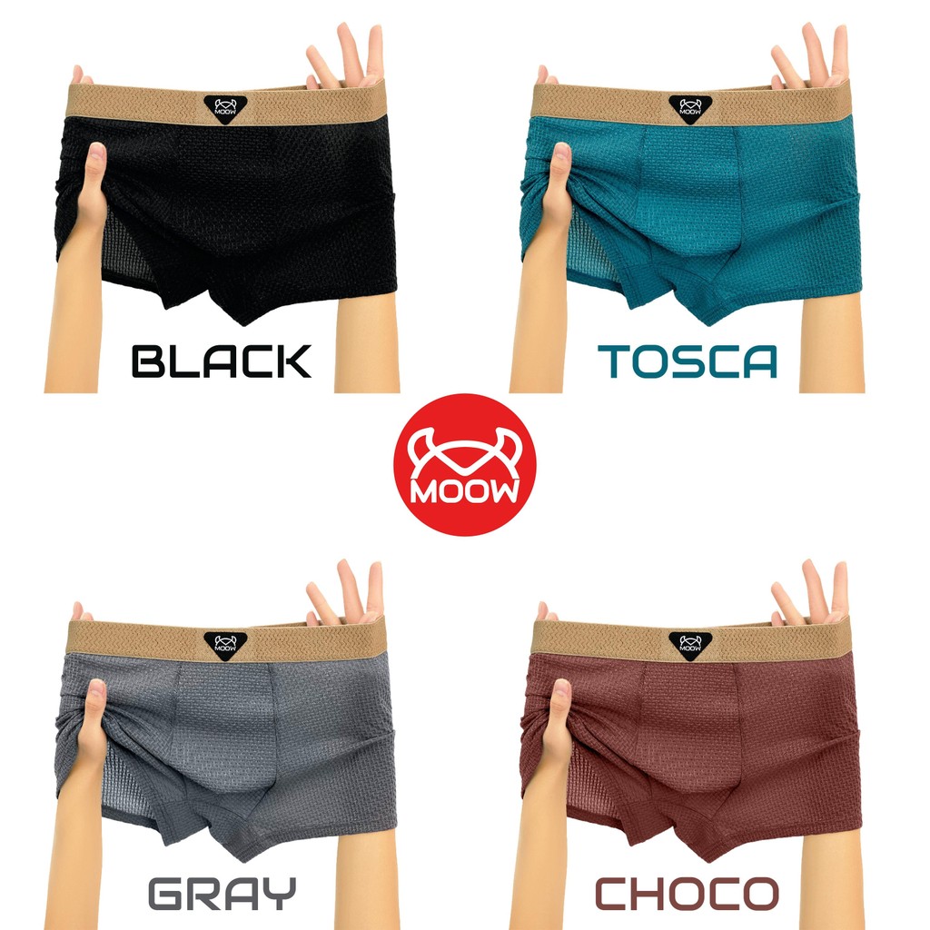 CROSSBELL X MOOW PAKET 4PCS Celana Dalam Boxer Pria Premium Ice Silk Adem Lembut Antibakteri 7A MP60