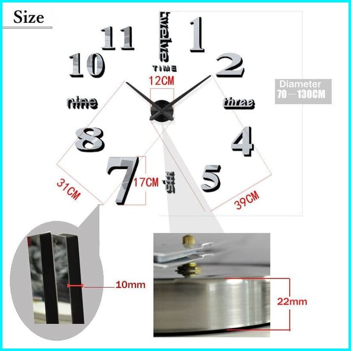 Jam Dinding Angka Besar Raksasa 3d Giant Wall Huruf Angka Diameter 70-130cm Elet 659 101
