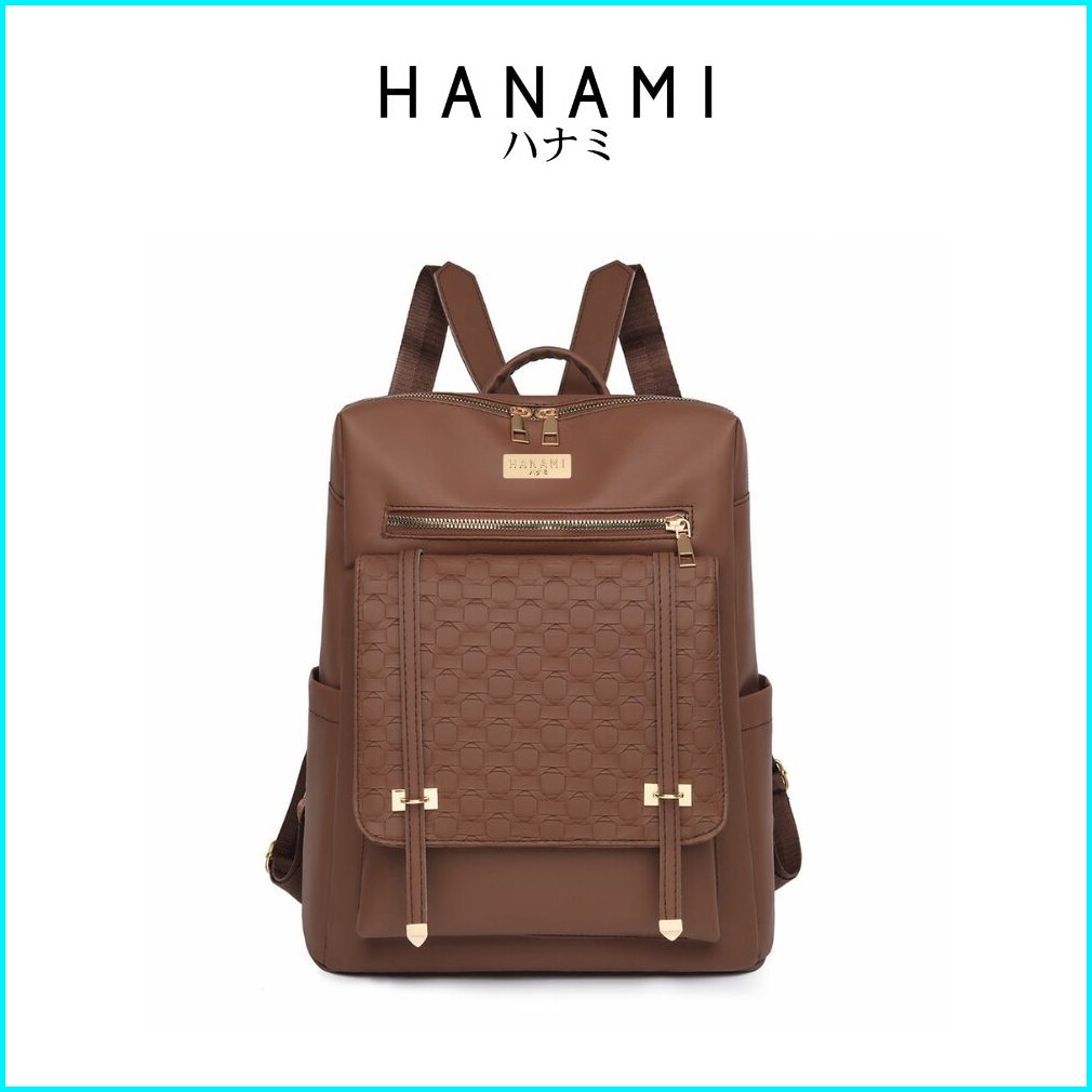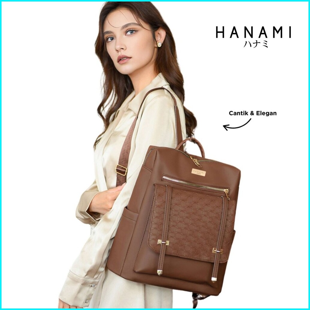 Hanami Tas Ransel Wanita Cokelat Hikaru Backpack Kulit Premium Branded Sekolah Kantor Keren Ta1033b7