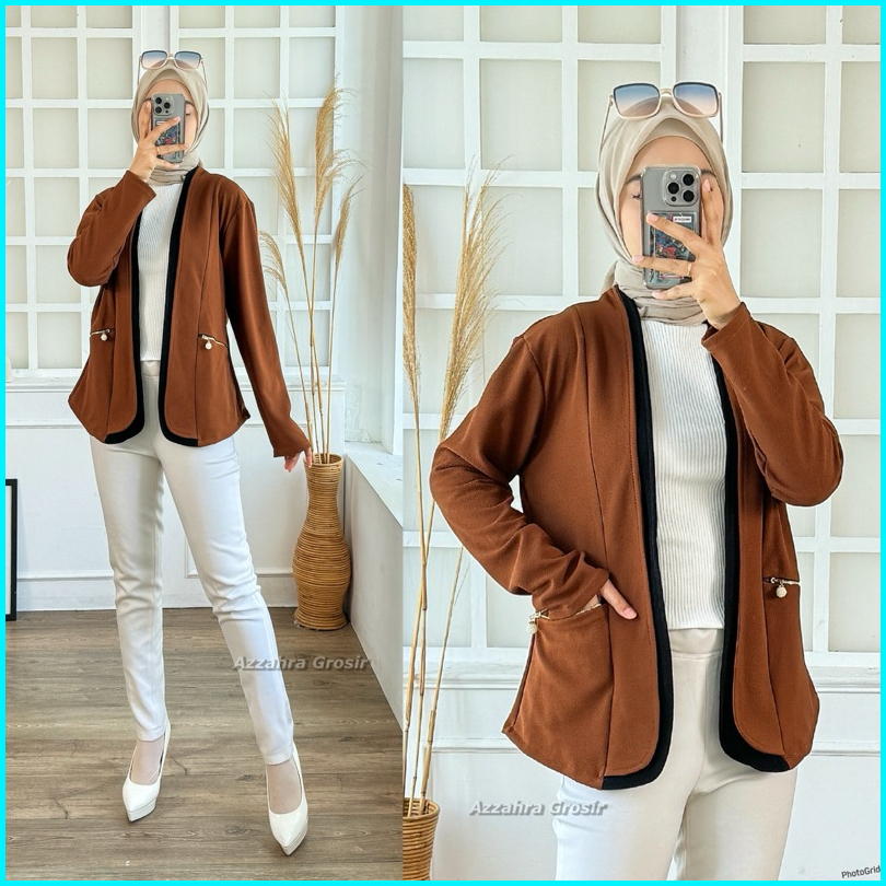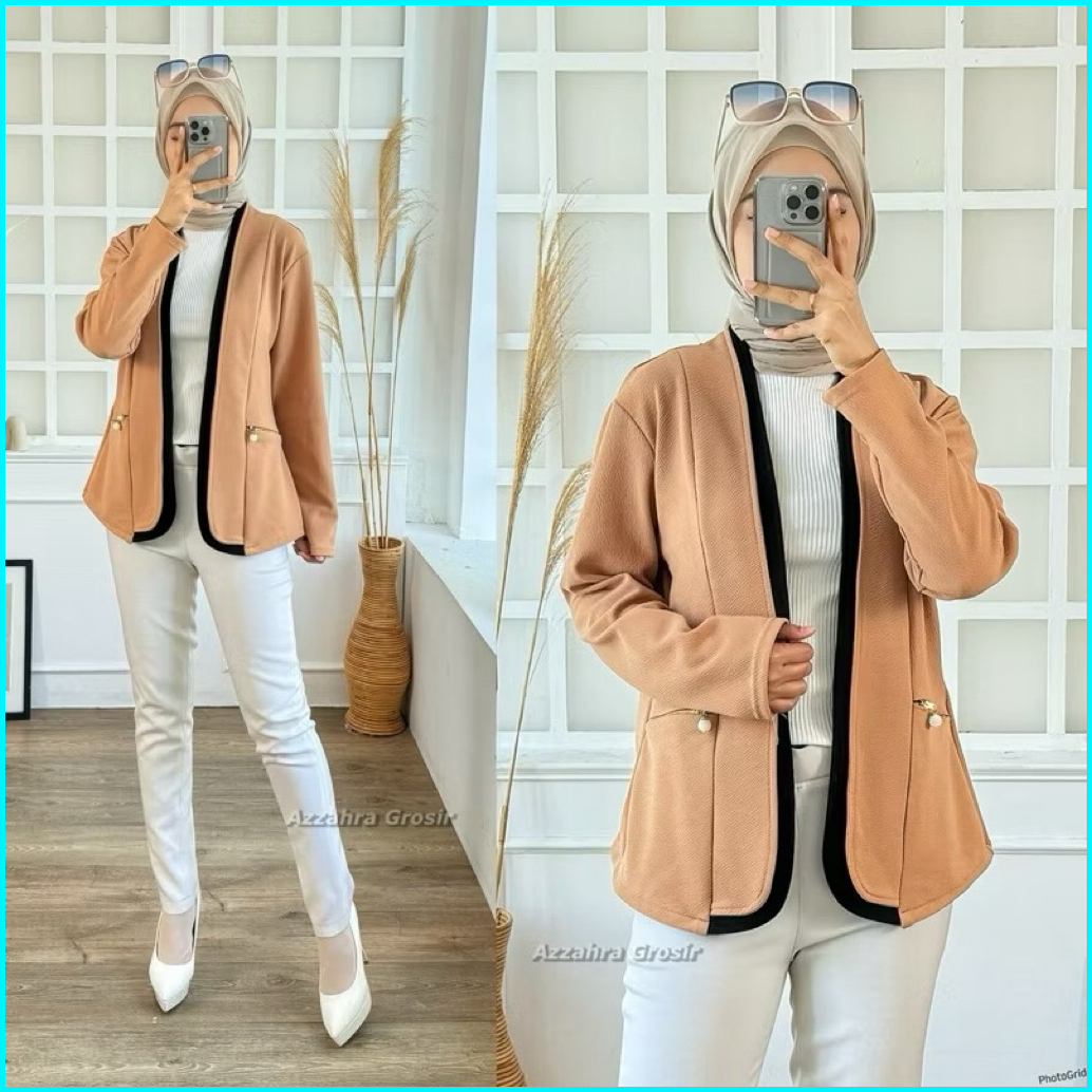 Am - Tiffanie Cardigan Wanita Outer Korean Style Double Pocket Formal Informal
