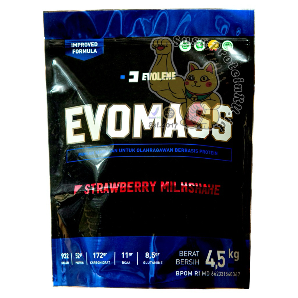 GAINER MASS EVOLENE EVOMASS ORIGINAL 4.5 Kg atau 10 lbs Free Shaker Tebal, Free New Prevo 1 Saset