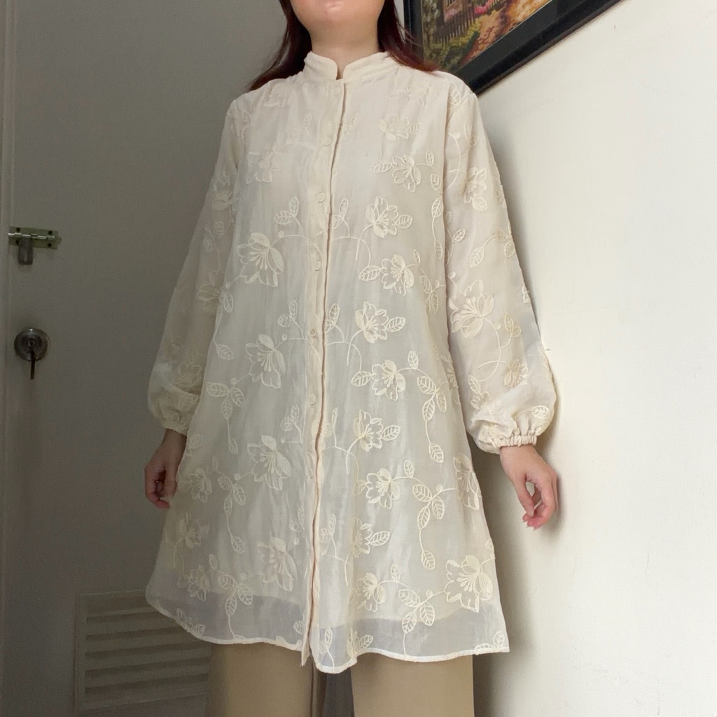 Zahra TUNIK T0P atasan blouse kemeja wanita katun organdi bordir kerja kondangan lebaran hari raya pesta wisuda wedding korean style by biel the label