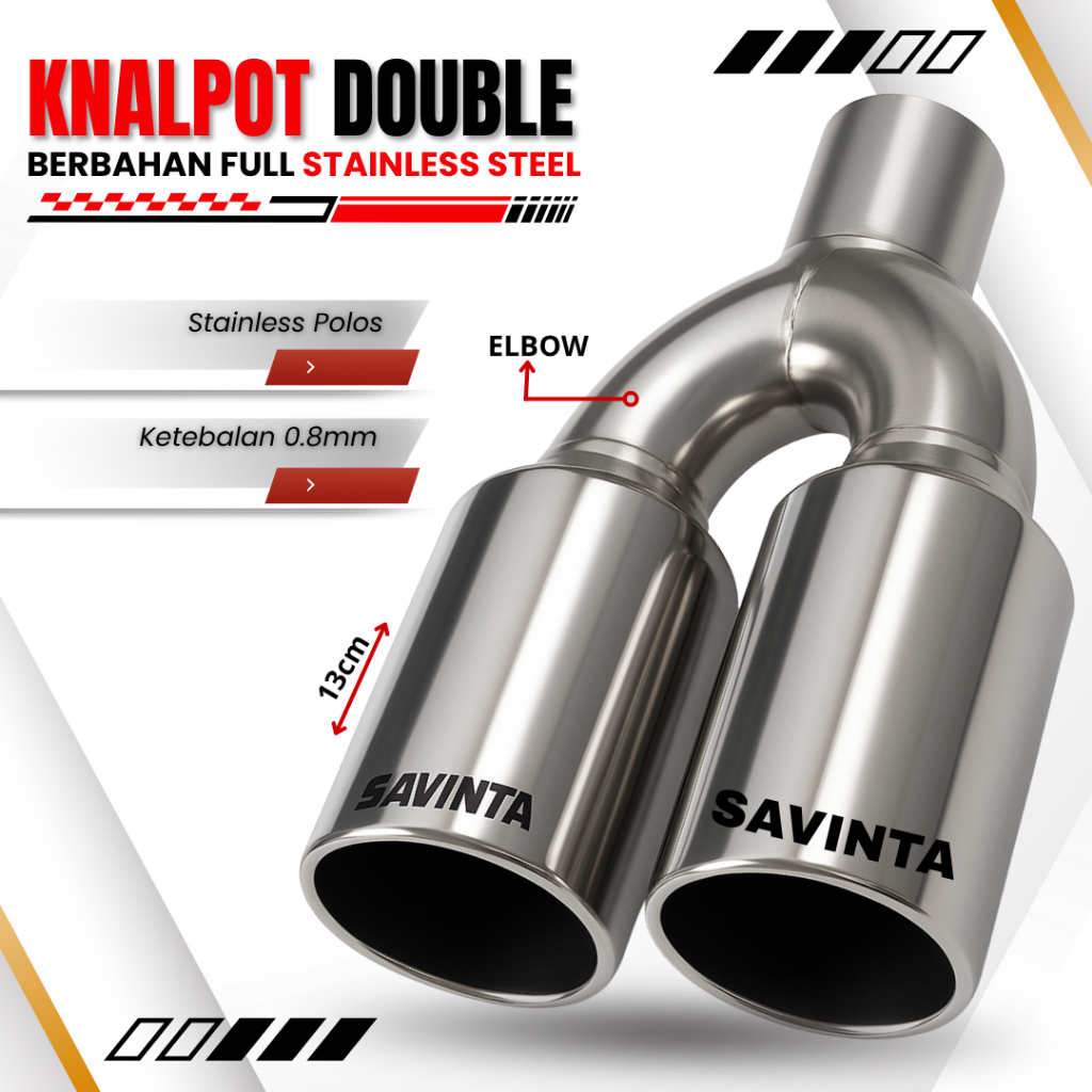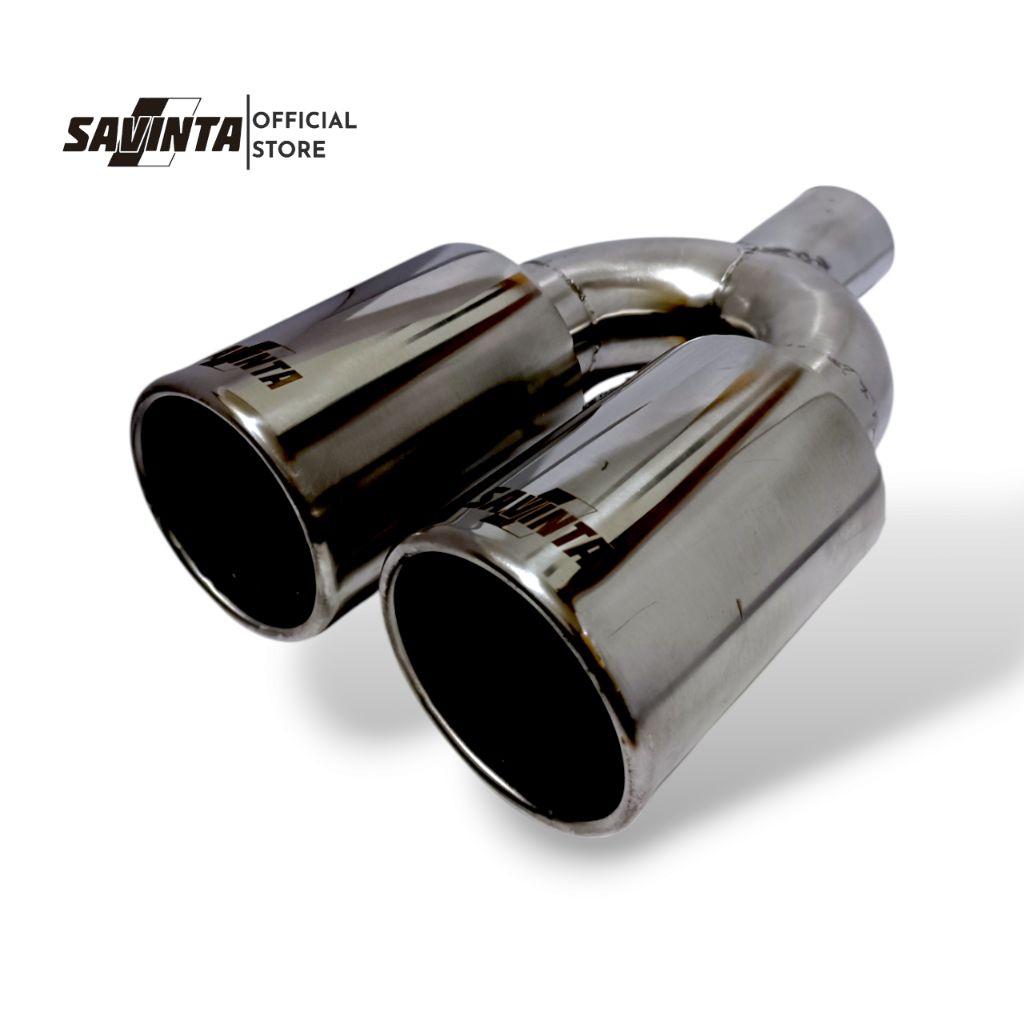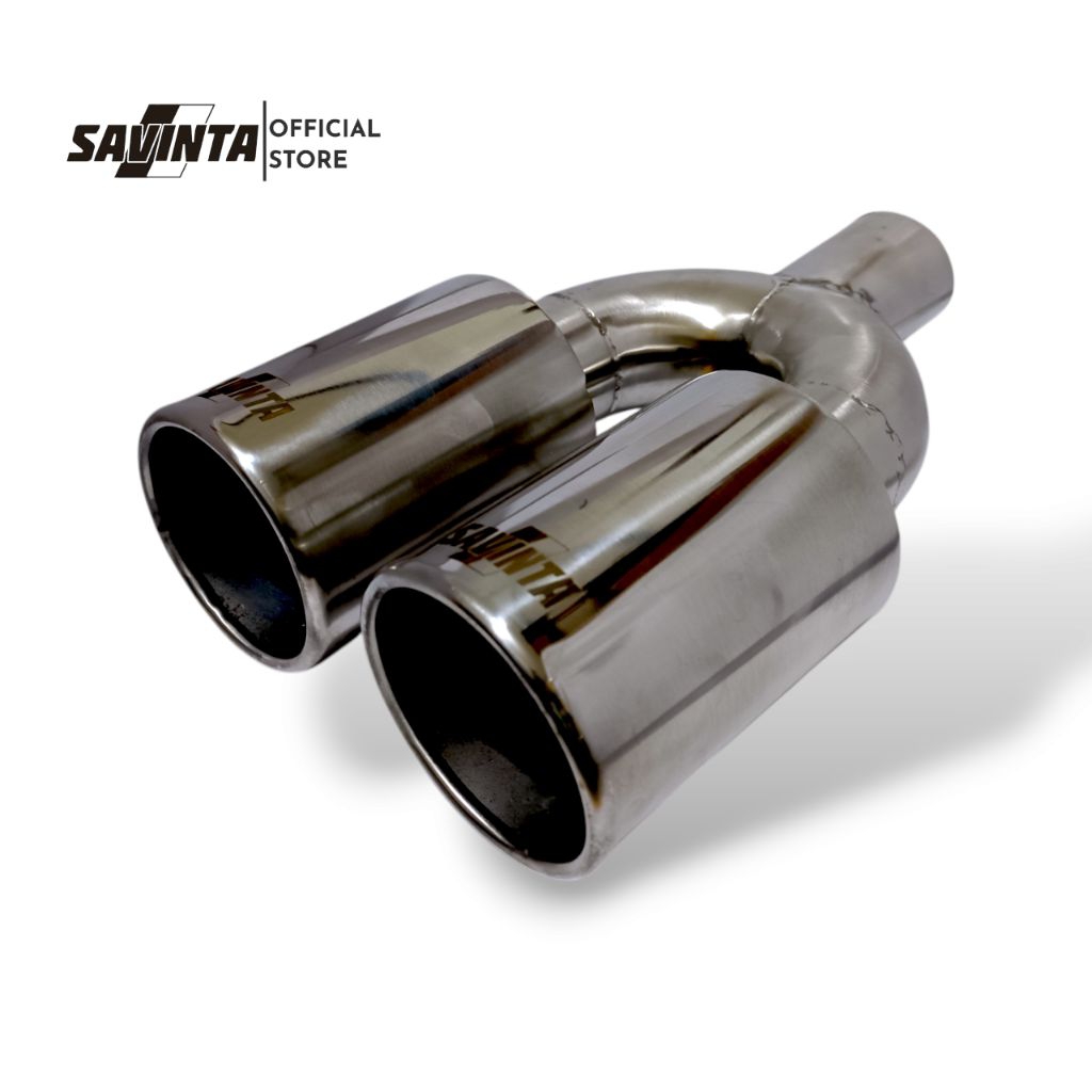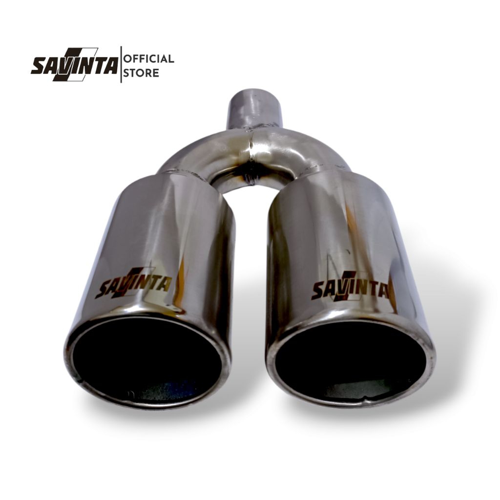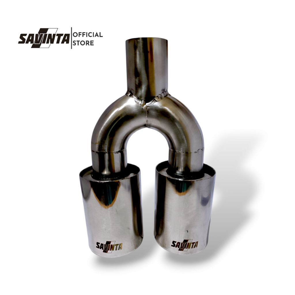 SAVINTA Knalpot Mobil Cabang 2 Full Stainless Muffler Silent Dobel Baut Universal Manual Matic