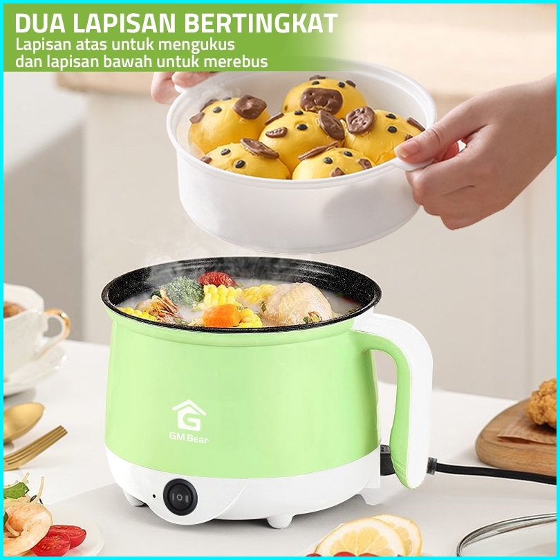 Gm Bear Panci Listrik 2in1 2051 - Panci Penggorengan Keramik Elektrik Free Steamer