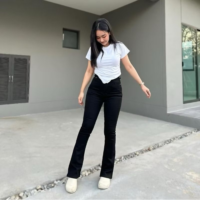 Highwaist Cutbray Jeans Wanita Celana Panjang Denim Cutbray