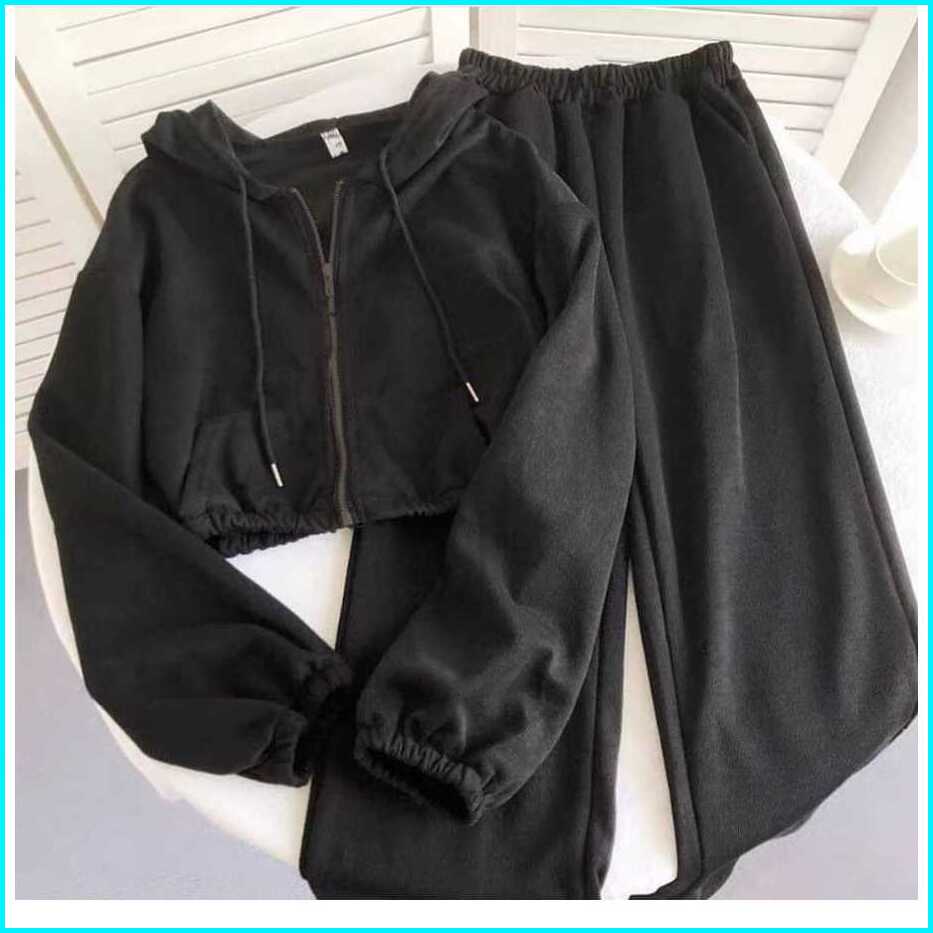 Set Setelan Hoodie Crope Celana Kulot Wanita Zera One Set Wanita Setelan