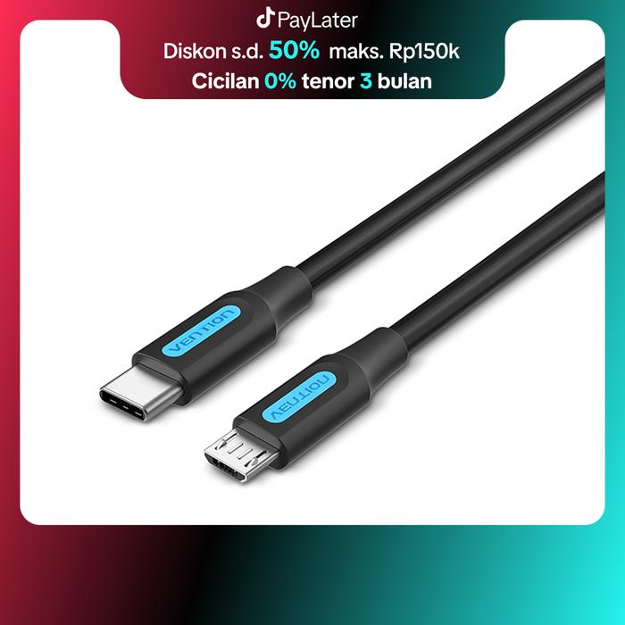 VENTION Kabel USB Type C To Micro B Data Male to Male Android Charging Black Cable - COV Black 0.5 Meter