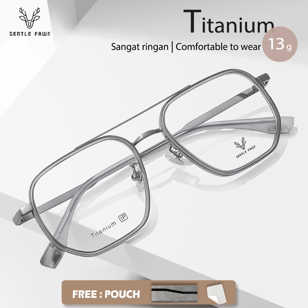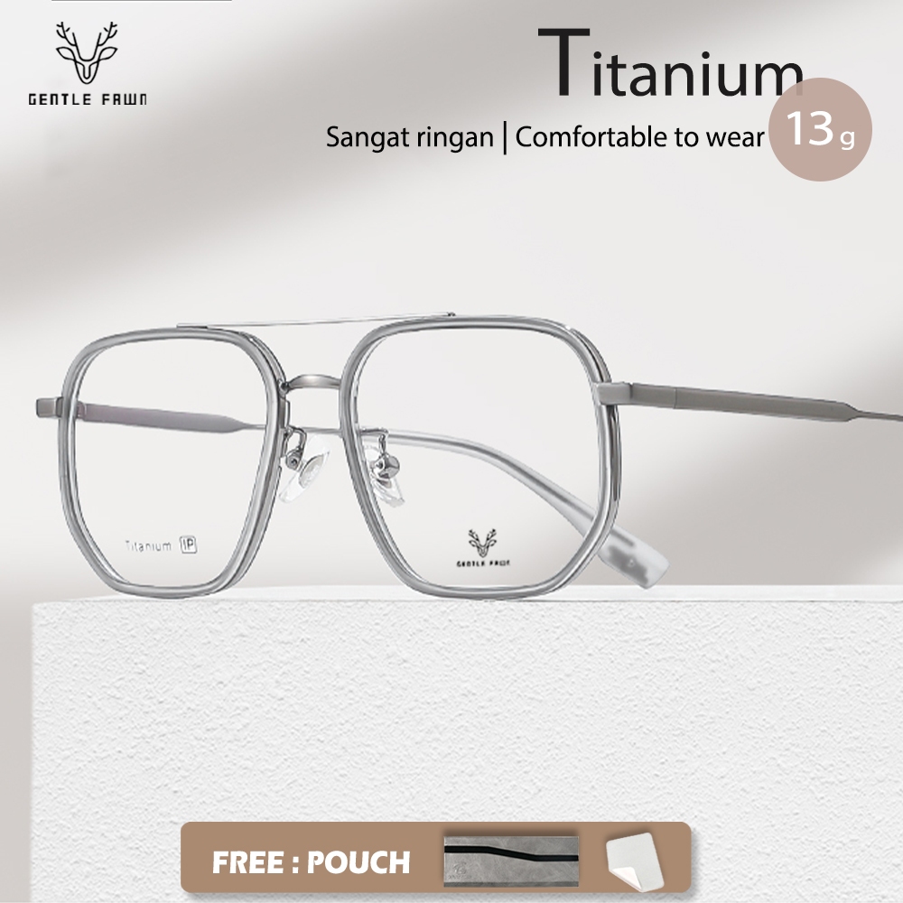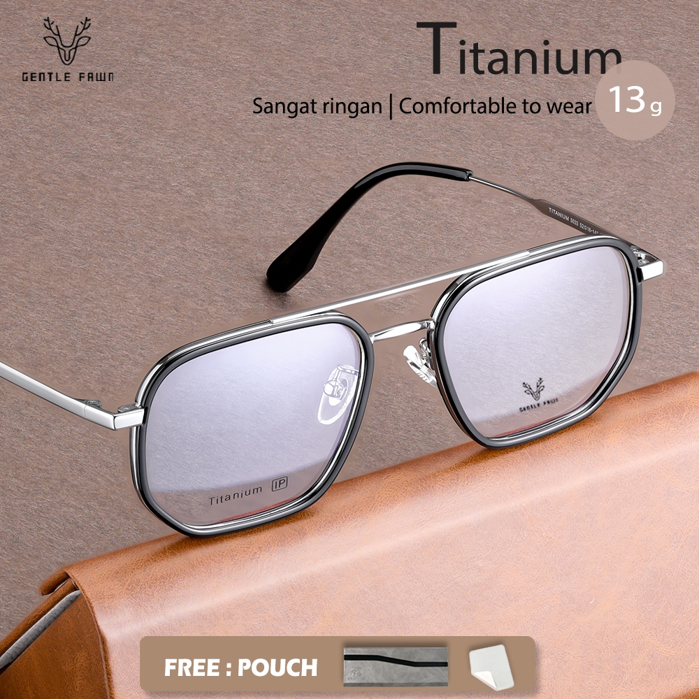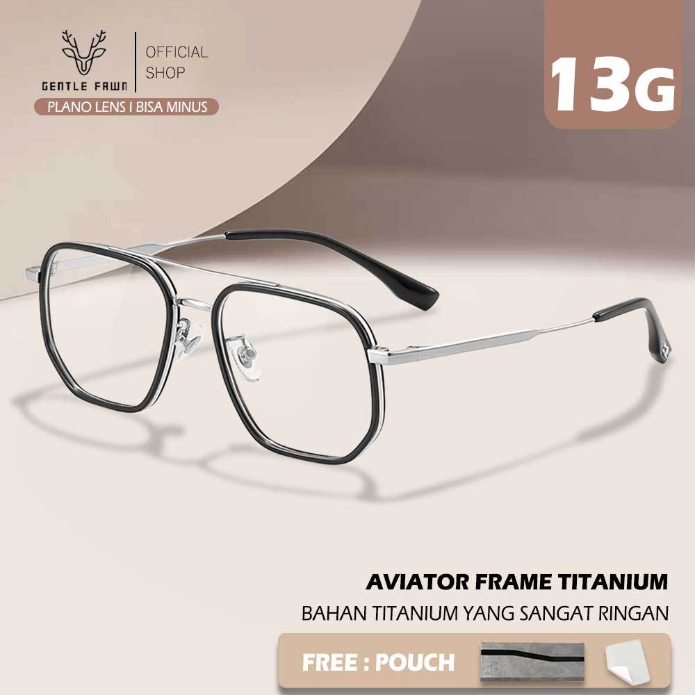 Gentle Fawn Frame Kacamata Titanium Ringan Kokoh Style Aviator Fashion Pria Wanita Lensa Plano Bisa Minus 5033
