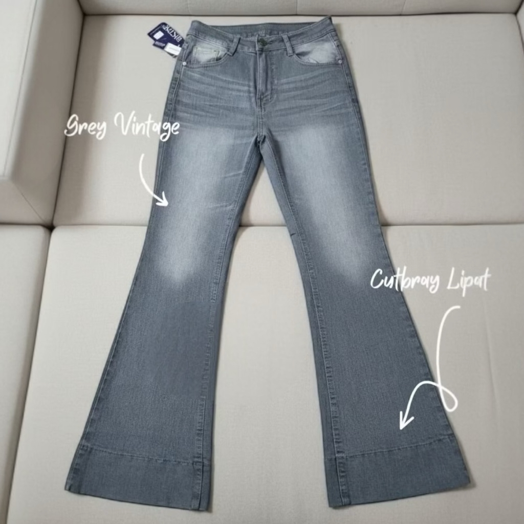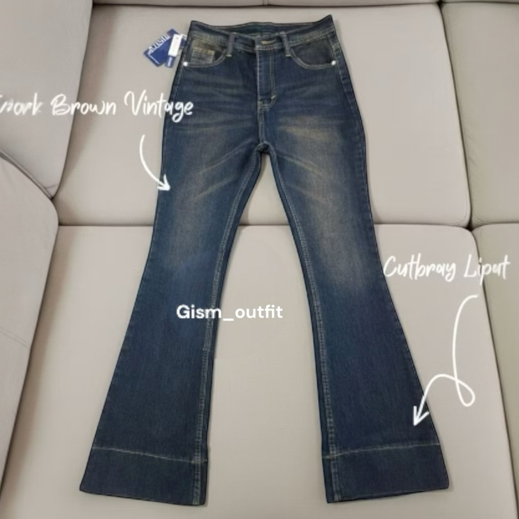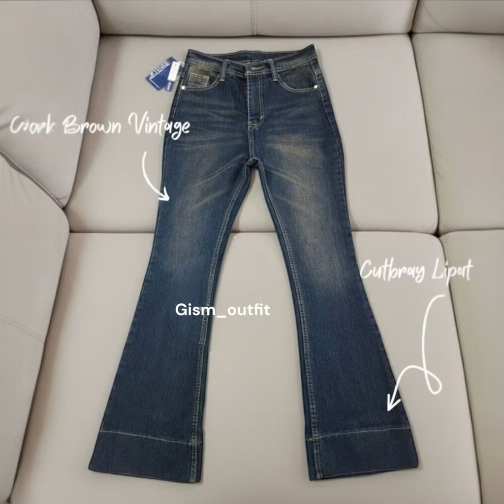 JennieHighWaist Cutbray Jeans Celana Fit&Flare Panjang Stretch Wanita Retro Vintage Lipat Bawah
