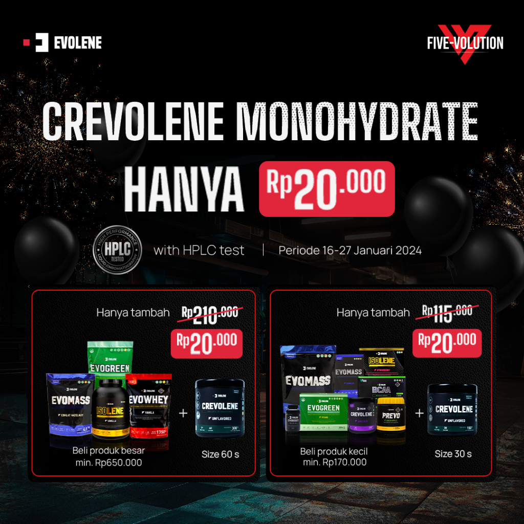 Shaker Evolene, Handuk, Funnel, Singlet, Sachet Whey, Sachet PWO, Sachet Creatine, Sachet Gainer, Sachet BCAA, Hoodie EIC
