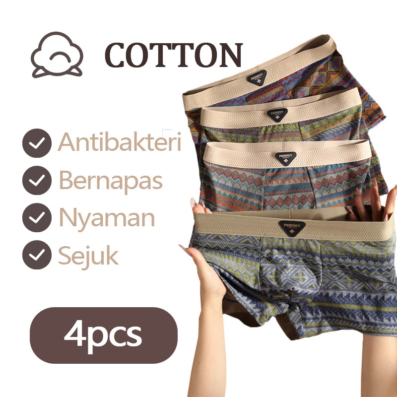 Celana boxer Katun Pria Celana Dalam Antibakteri Elastis & Anti Lembab dan Bau PriaNyaman 4PCS