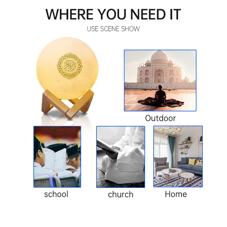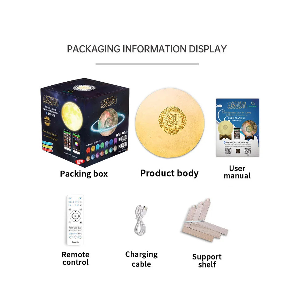 Equantu SQ168 Speaker Quran Lampu Bulan LED 7 Warna Touch Control Bluetooth With Smart App Control