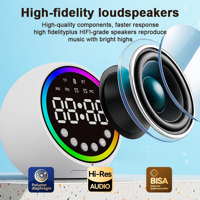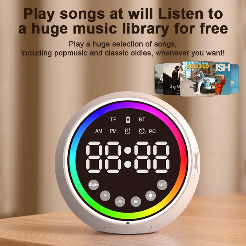 Actual【】Speaker Bluetooth Jam LED Smart Multi-function Alarm Clock RGB rtable Super Bass Speaker