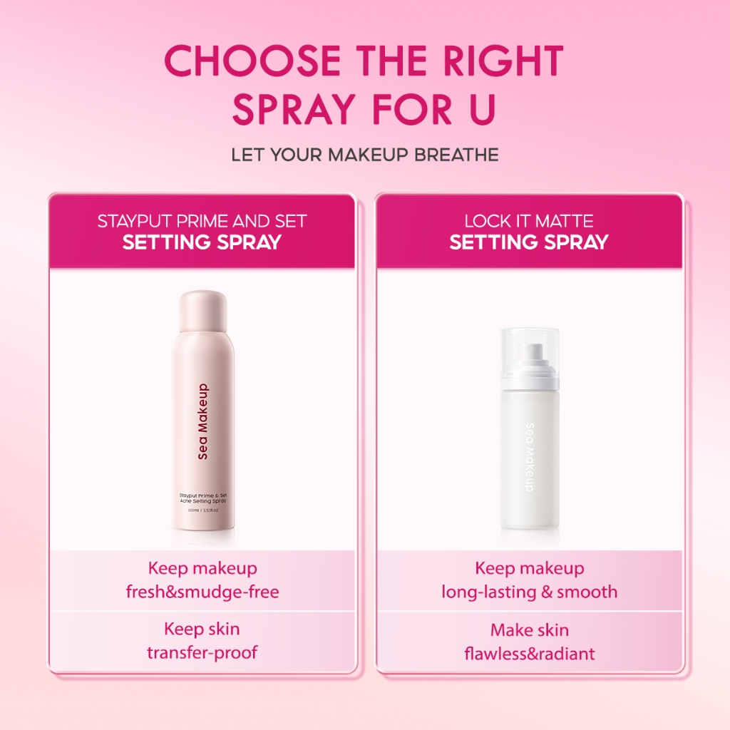 Sea Makeup Stayput Prime & Set Continuous Setting Spray - Longlasting makeup 24 jam flawless velvet finish fine mist spray primer matte makeup