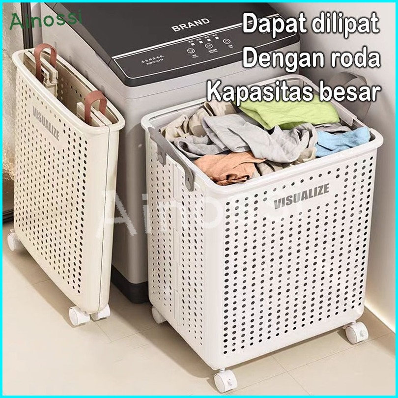 Laundry Basket Keranjang Serbaguna Tempat Baju Kotor Dengan Roda Keranjang Baju Lipat Keranjang Penyimpanan Dengan Roda