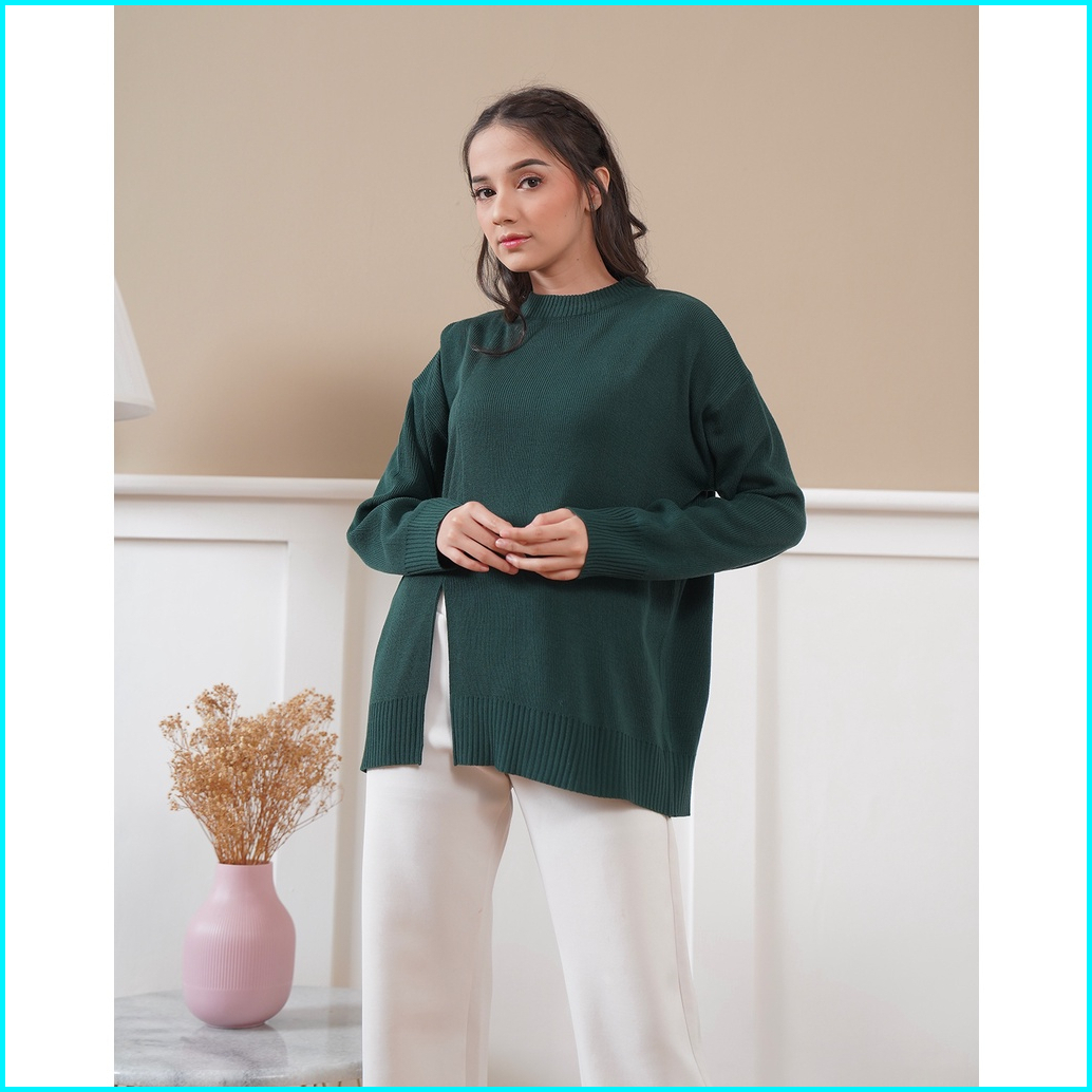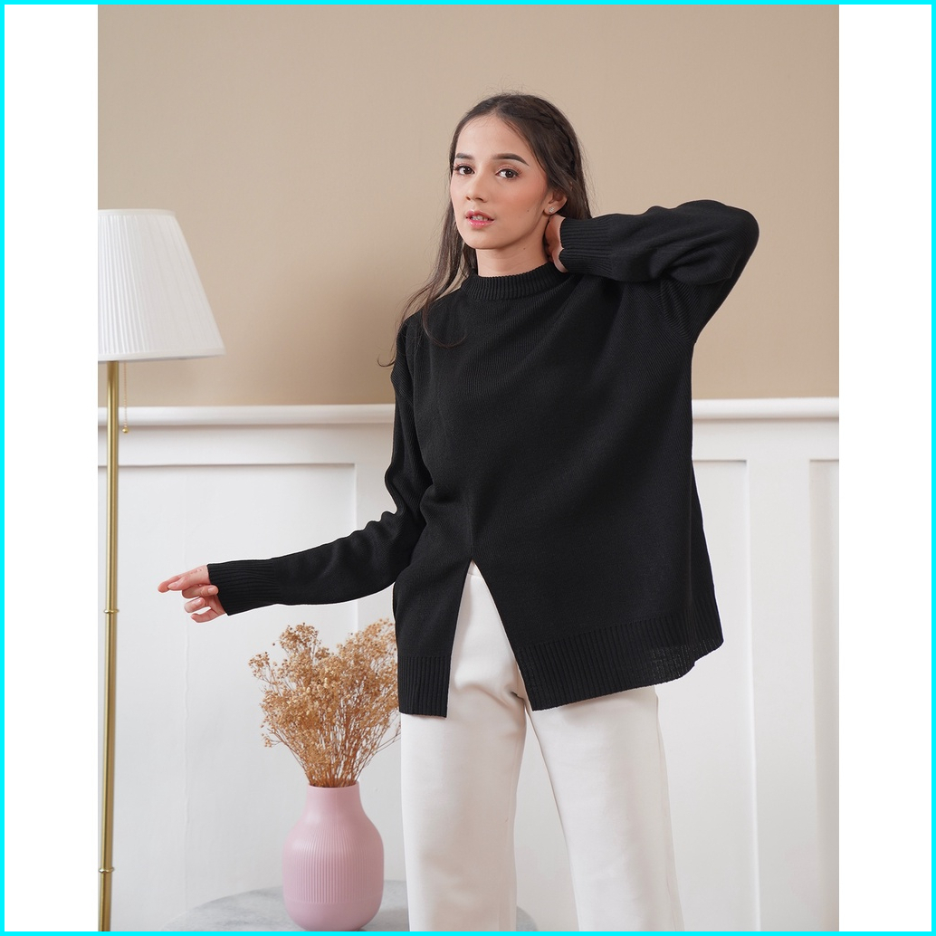 Sweater Oversize Ellia Knit Baju Slit Rajut Wanita