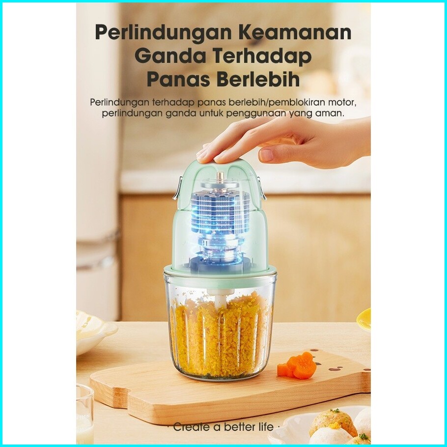Samono Chopper 600ml Wadah Kaca 200 Wat 8 Mata Pisau Penghalus Daging Dan Bumbu Mpasi Pemroses Makanan Food Processor Ga