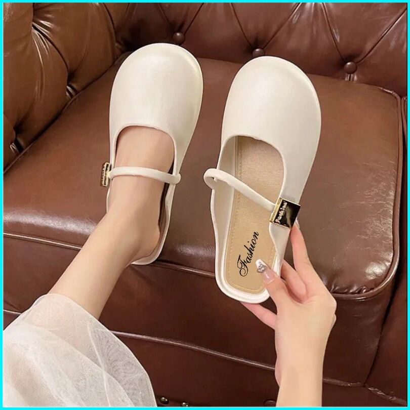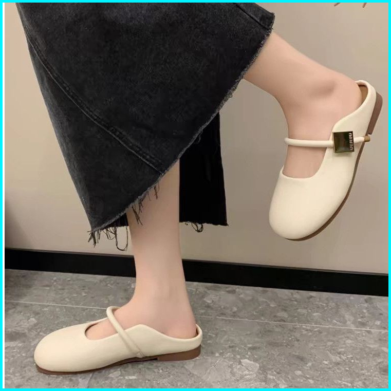 Sandal Semi Sepatu Menutup Sandal Flat Wanita Sepatu Wanita Fashionable Gaya Korea Fashion Sepat
