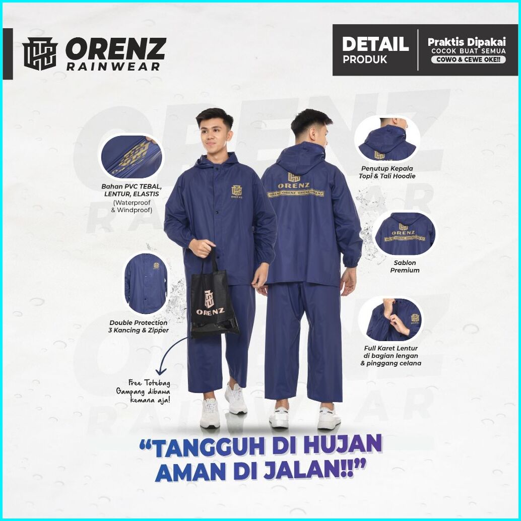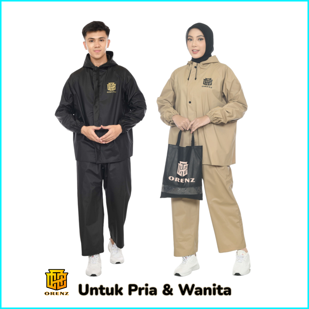 Raincoat Jas Hujan Orenz Setelan Pria Wanita Bahan Pvc 0.25 Tebal Lentur Anti Rembes