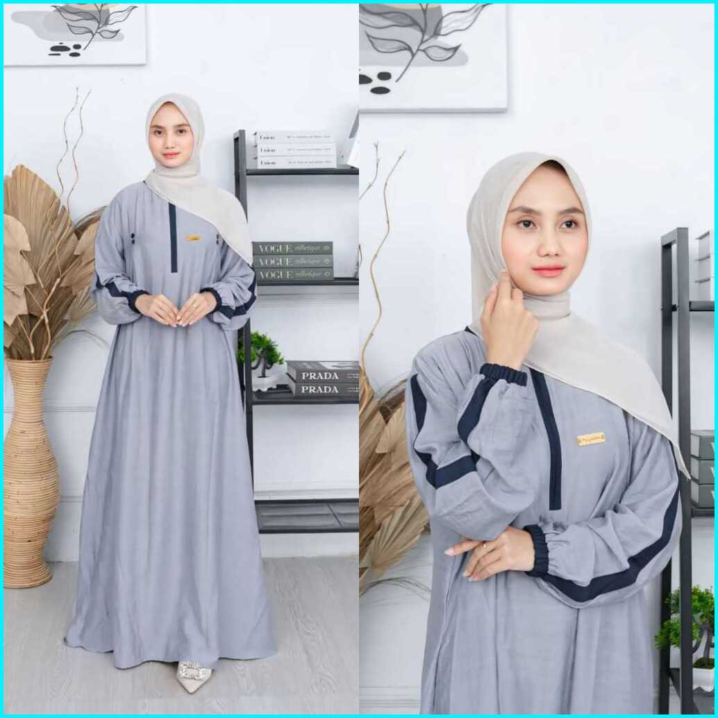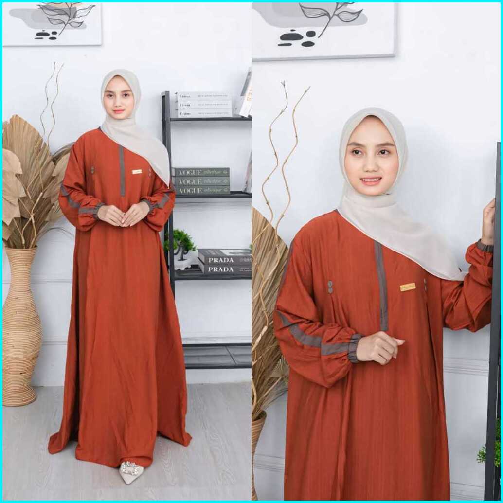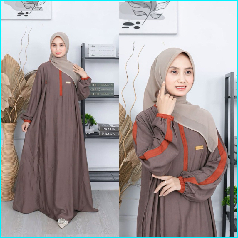 Faiza Dress Gamis Muslim Wanita Polo Linen Polos Busui Cantik Kekinian