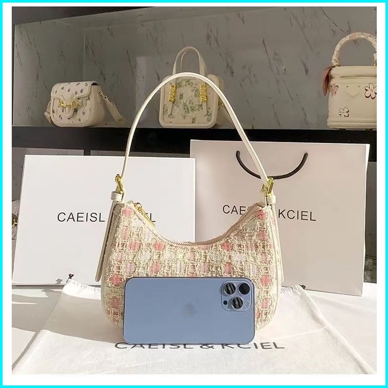 Bao079 Tas Wanita Denim Retro Tas Bahu Jinjing Half Moon Underarm Tas Vintage Tas Elegan Tas Pesta