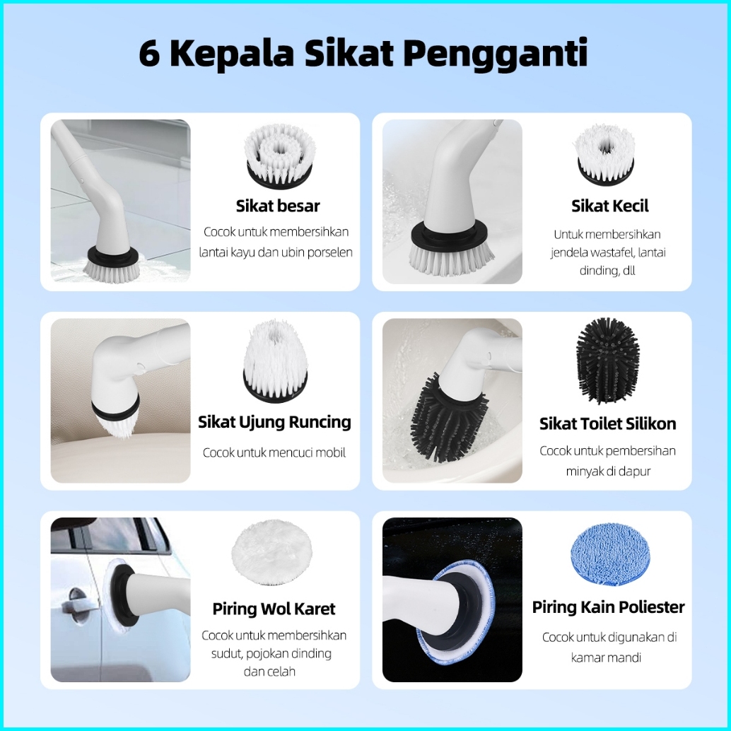 Jvjh Sikat Pembersih Elektrik Portable 6-in-1 Wireless Multifungsi Sikat Wc Elektrik Kamar Mandi