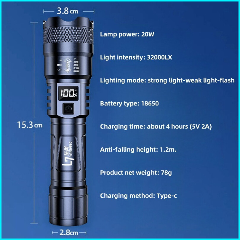 300w Senter Cas Police Swat Senter Senter Led Super Terang Portabel Zoom Rechargeable Ipx8 Tahan Air 18650 Baterai Tahan