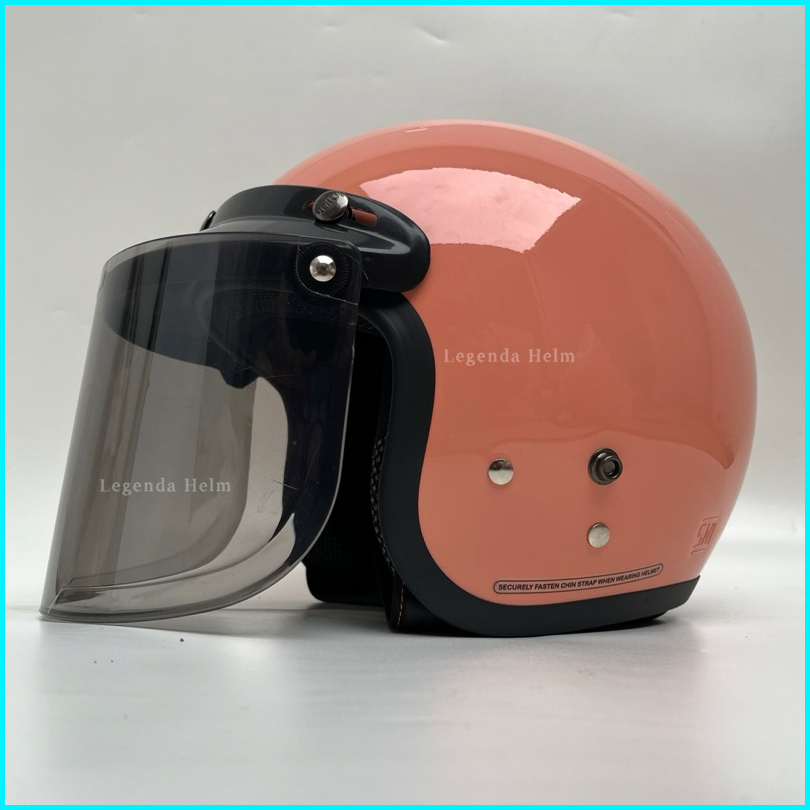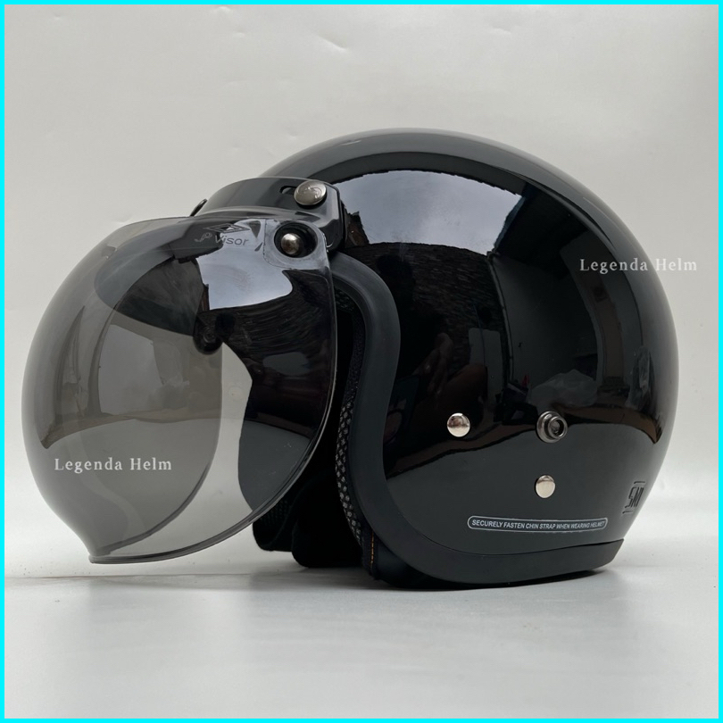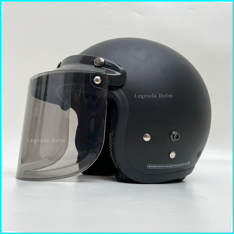 Helm Bogo Dewasa Retro Pria Dan Wanita Full Leher Sni Kaca Datar Hitam