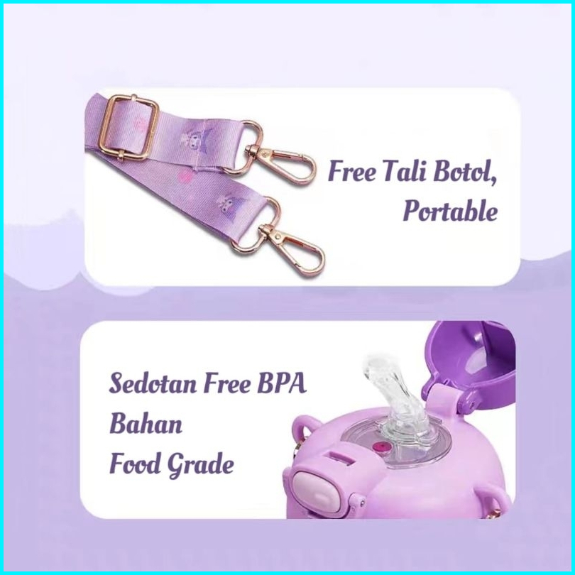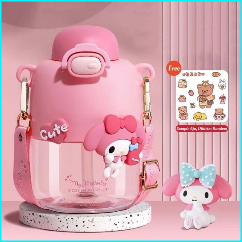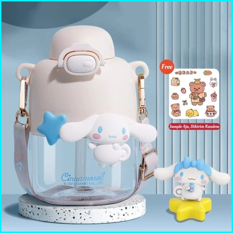 Botol Minum Sanrio Free Stiker Lucu Tempat Minum Motif Cinnnamoroll Kuromi Melody Jumbo Tali -2309