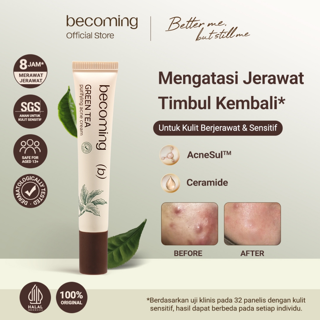 [SENSITIVE SKIN FRIENDLY] becoming Green Tea Purifying Acne Cream 15gr | Acne Spot Treatment | Obat Jerawat | Totol Wajah Berjerawat