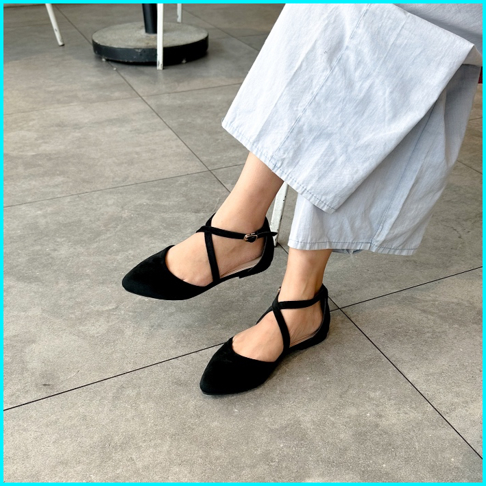 New La Vita E Bella Laura Crossed Strap Sandal Flat Teplek Wanita Lv 514 - Black