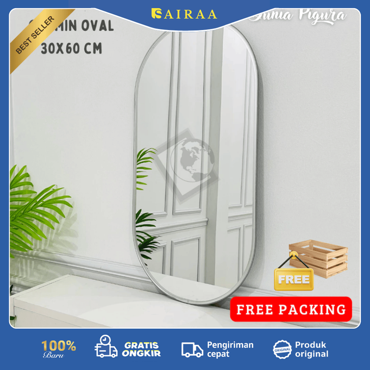 KACA CERMIN AESTHETIC BEST SELLER Cermin Oval Kapsul Dinding Gantung Aesthetic 60 x 30cm - Kaca cermin full body