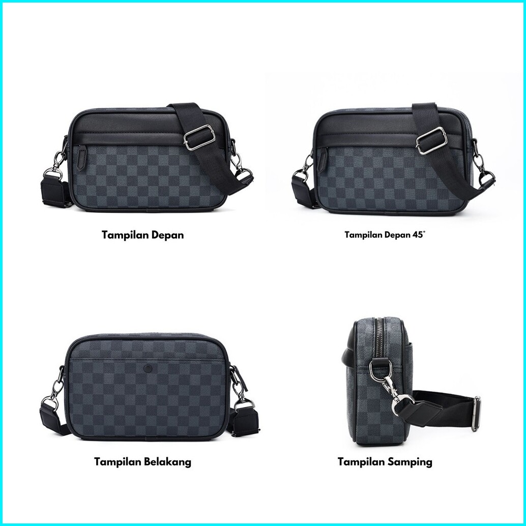 Gladio Tas Selempang Pria Ageru Hitam Kulit Motif Kekinian Kasual Sling Bag Terbaru Branded Gld016b5